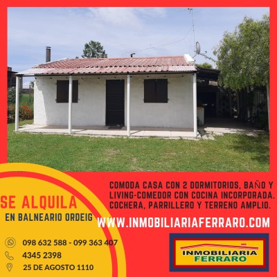 SE ALQUILA - EN BALNEARIO ORDEIG - CASA CON 2 DORMITORIOS