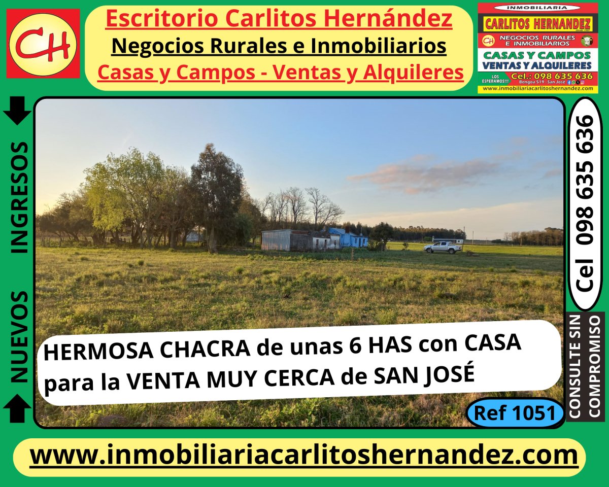 Ref 1051) V - 🌳🌳 HERMOSA CHACRA de unas 6 HAS con 🏘🏘 CASA para la VENTA, 💲 💲 MUY CERCA de SAN JOSÉ