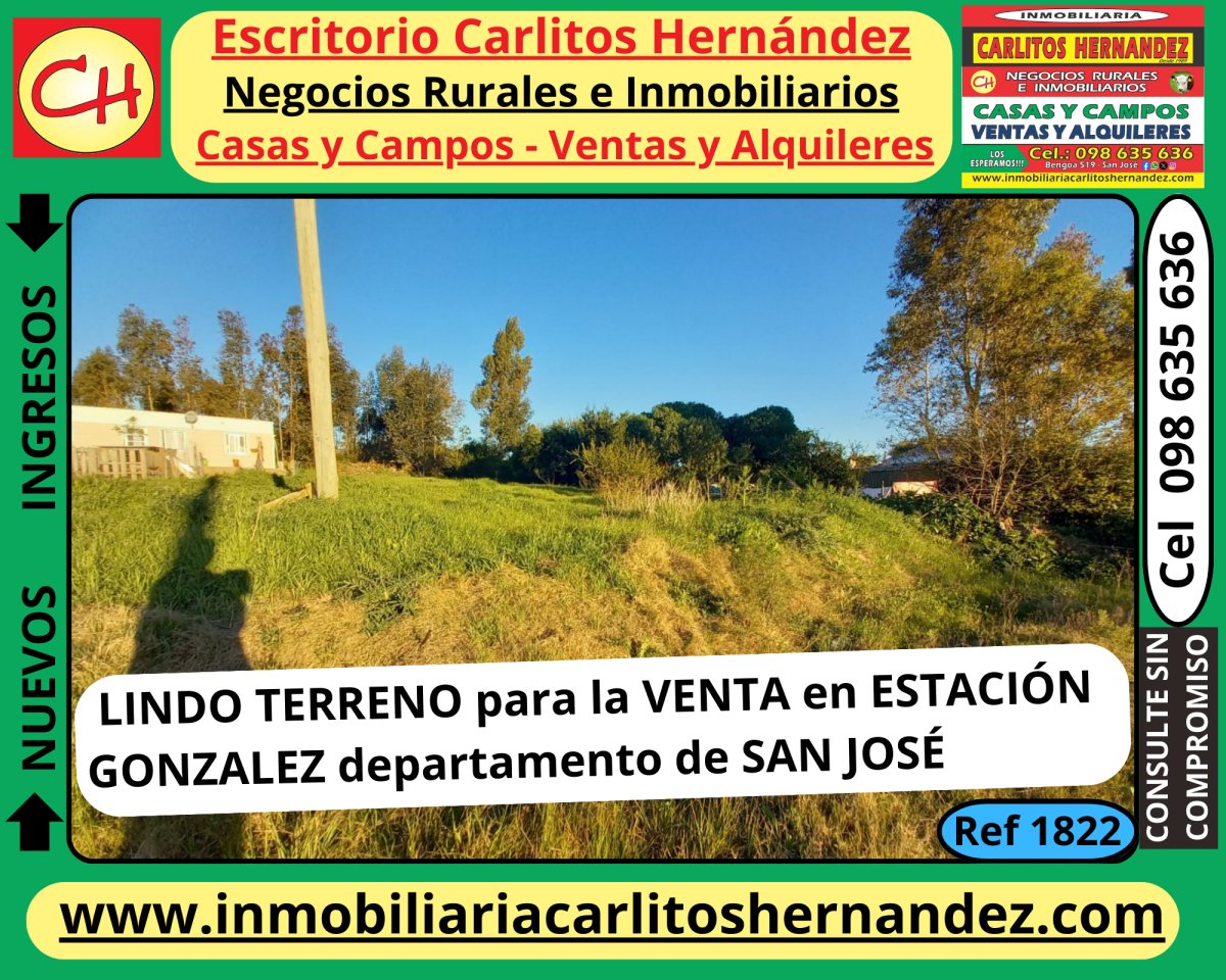 Ref 1822) V - 🌳🌳LINDO TERRENO para la VENTA 💲 💲 en 👉👉 ESTACIÓN GONZÁLEZ departamento de SAN JOSÉ