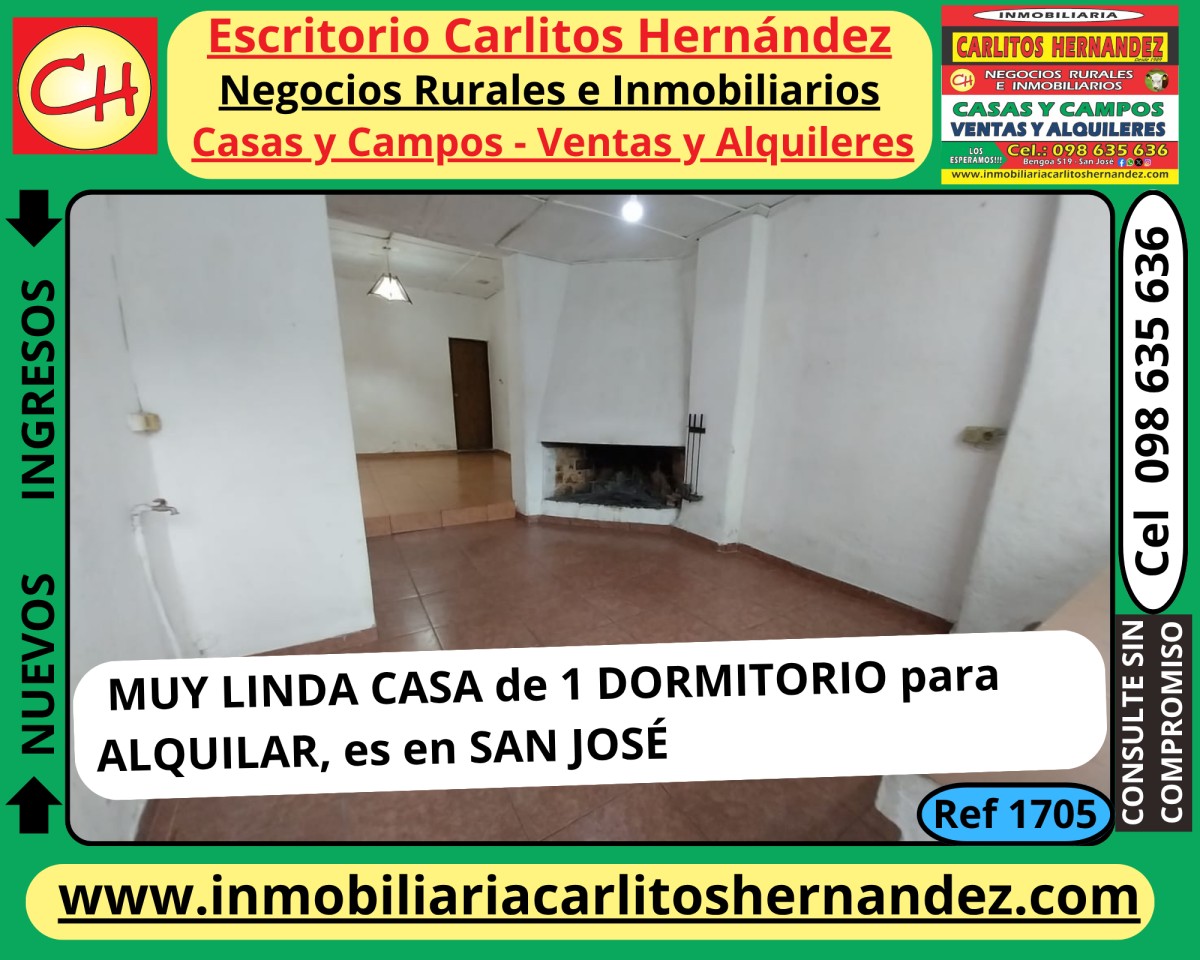 Ref 1705) A - 🏘🏘 MUY LINDA CASA CÉNTRICA de 1 DORMITORIO 🛌 para ALQUILAR, 💲 💲 es en SAN JOSÉ 👈 👈