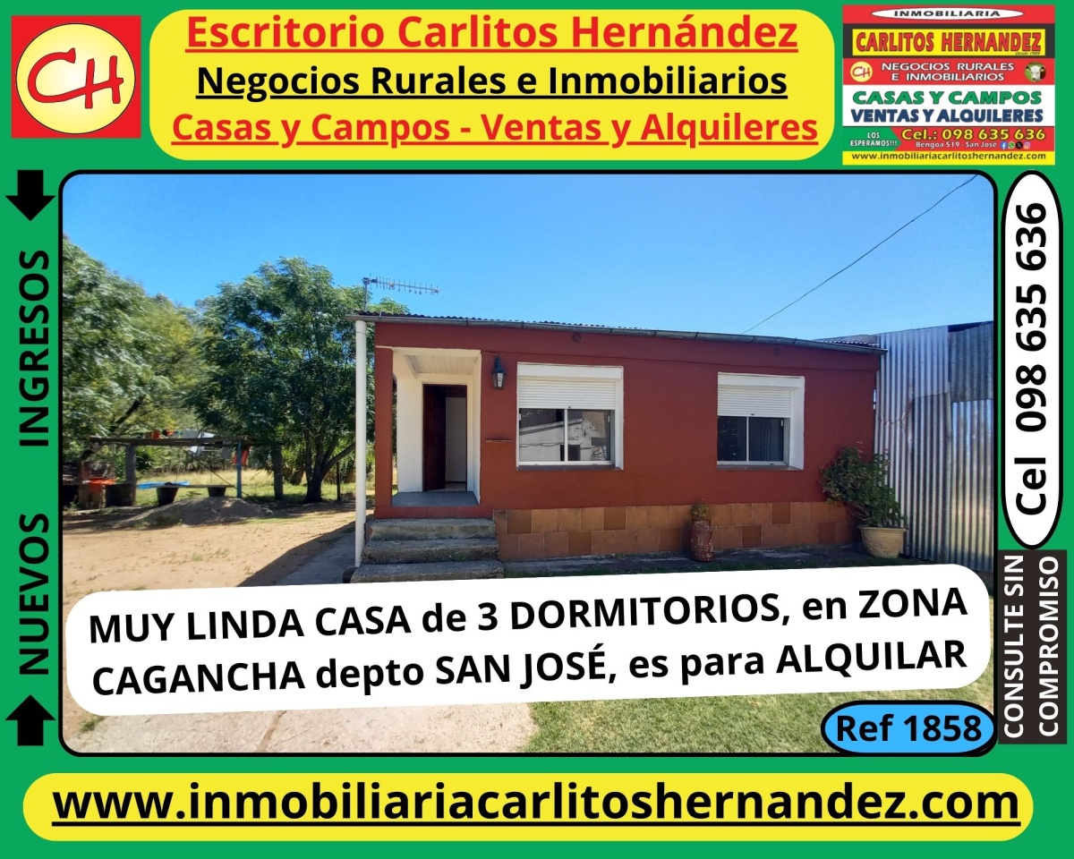 Ref 1858) A - 🏘🏘 MUY LINDA CASA de 3 DORMITORIOS 🛏 🛏 🛏 para ALQUILAR, 💲 💲 en ZONA CAGANCHA departamento de SAN JOSÉ 👈 👈