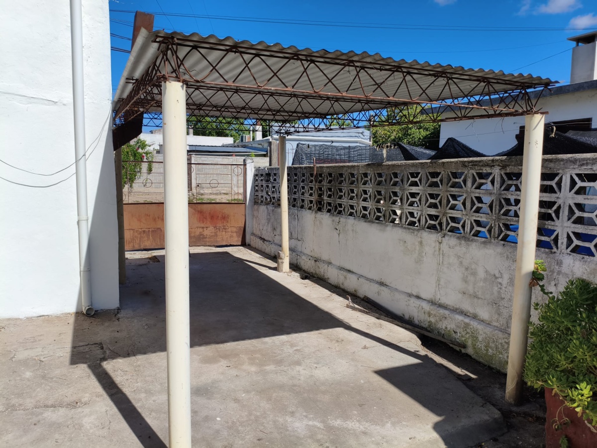 Casa compuesta de 2 dormitorios, living con estufa, comedor, cocina, cuarto de baño, patio con churrasquera, galpón y cochera. -